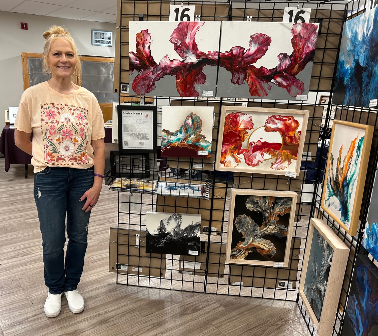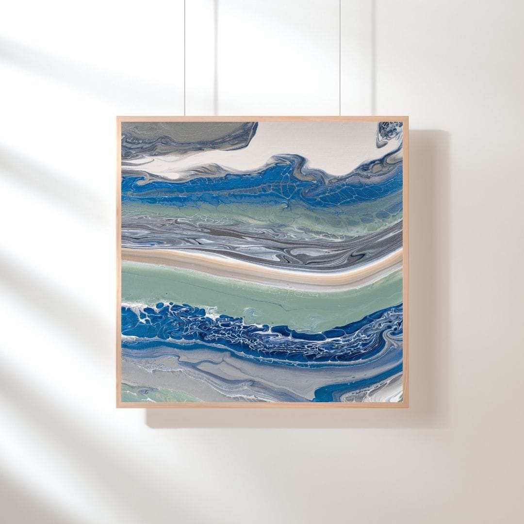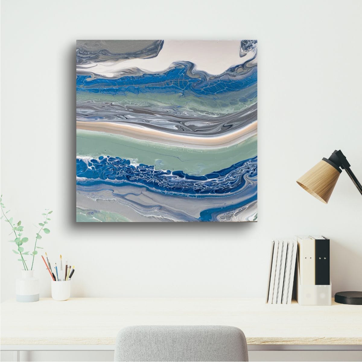 Marina Pearson is a Pacific Northwest–based abstract artist whose work is inspired by the fluid rhythms of water, light, and atmosphere found along the coastal landscapes of Washington. Using fluid acrylic techniques, she creates atmospheric compositions that exist between landscape and abstraction, capturing the feeling of distant horizons, ocean mist, and shifting tides.